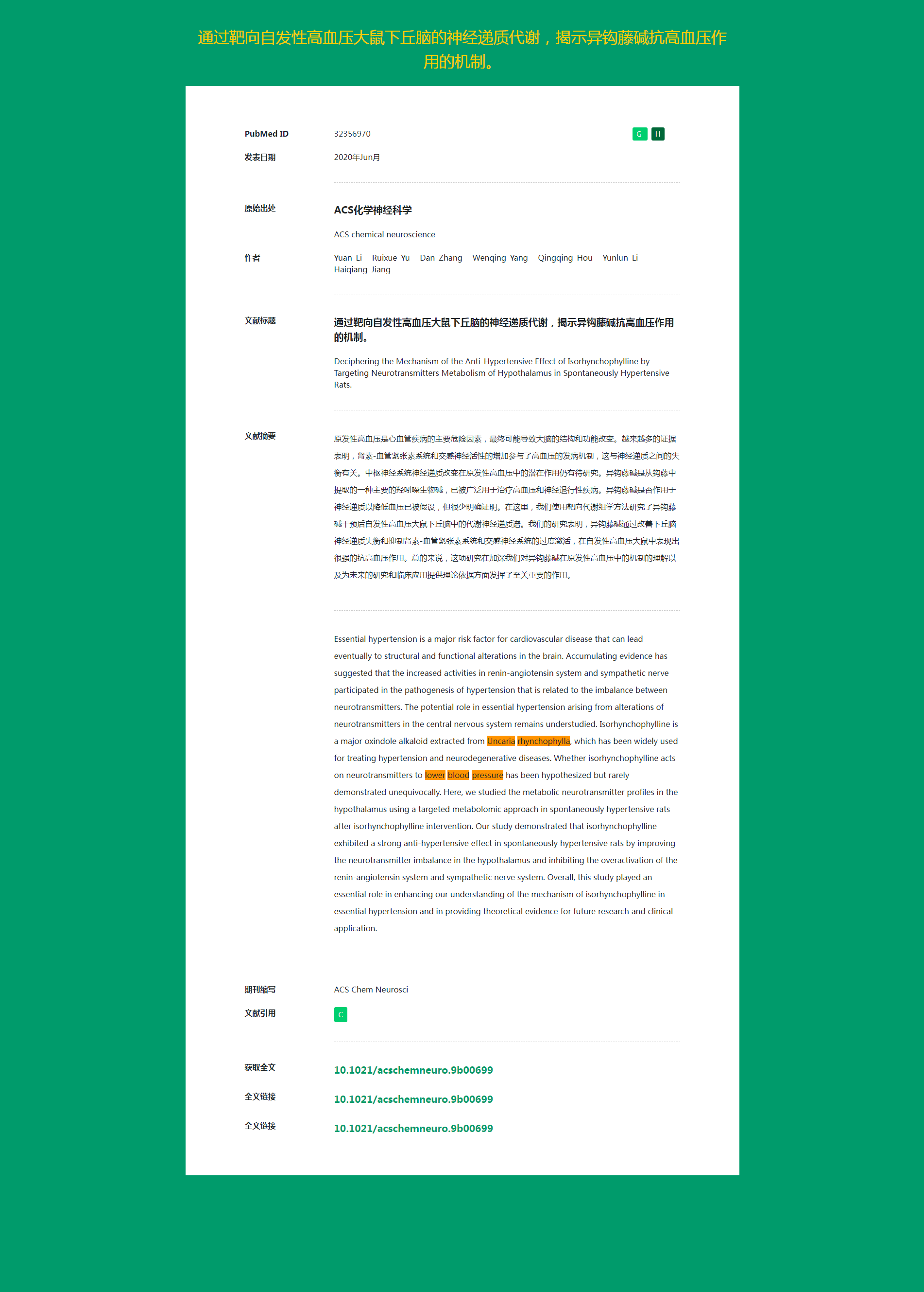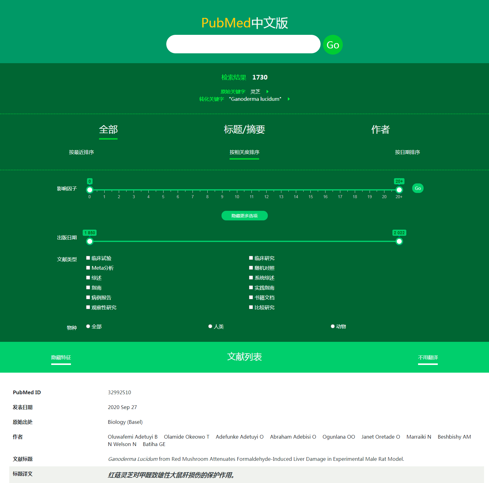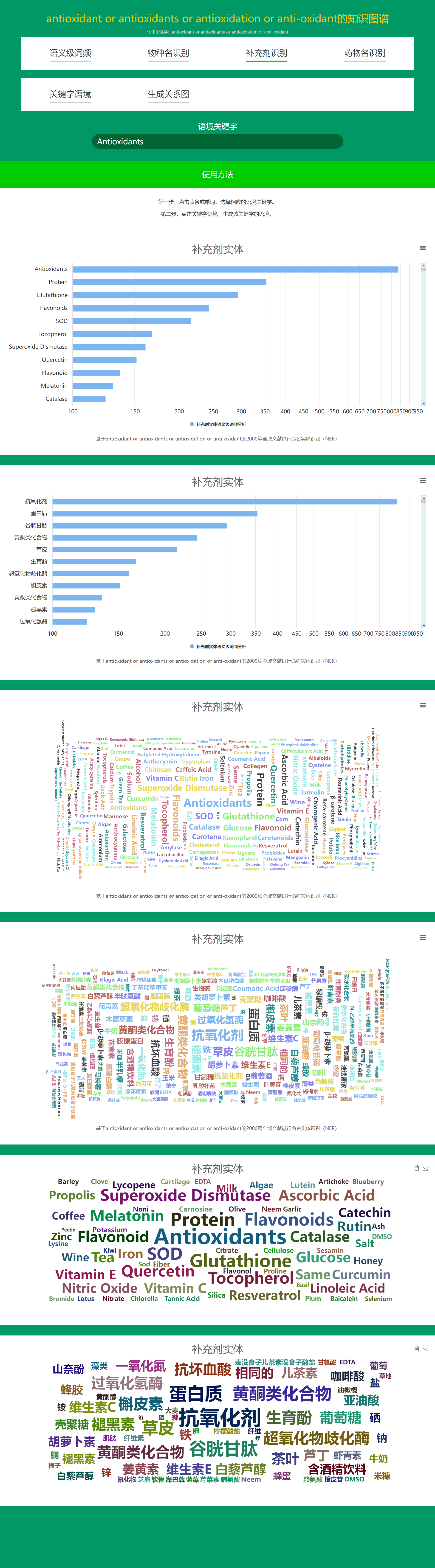 在语义级知识图谱的语义级词频、物种名识别、补充剂识别和疾病名识别中,以及在超级语义级知识图谱的超级分析、超级物种、超级补充与超级疾病中,你都可以很方便地随时查看你所感兴趣的关键字的文献。