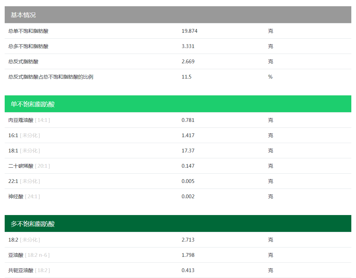 | 26种不饱和脂肪酸成分的营养速查 | √ | √ | √ | |