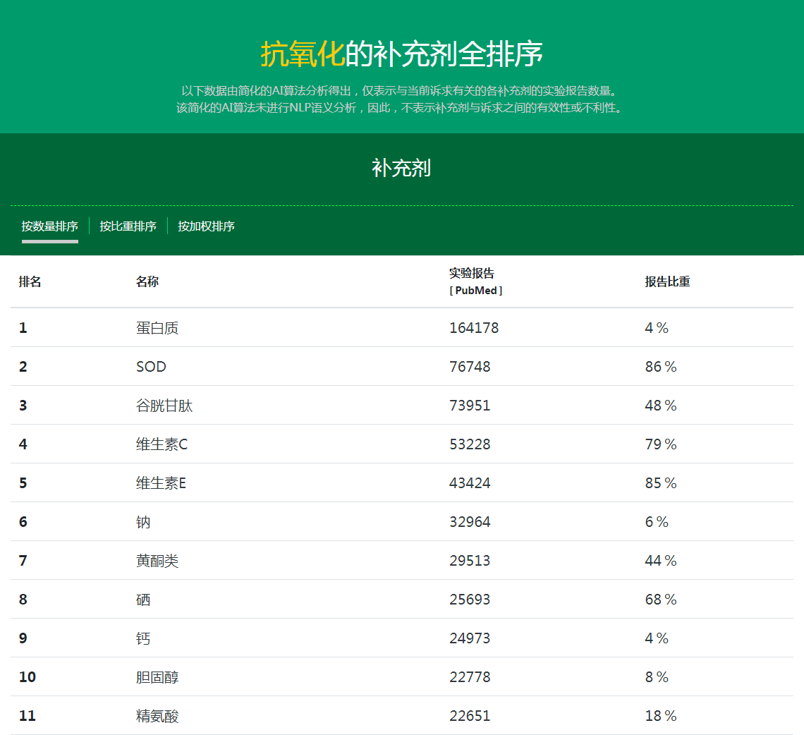 针对任何一种疾病或诉求,在全球超200万个物种与超10万种补充剂中,找出最有效的物种与补充剂。