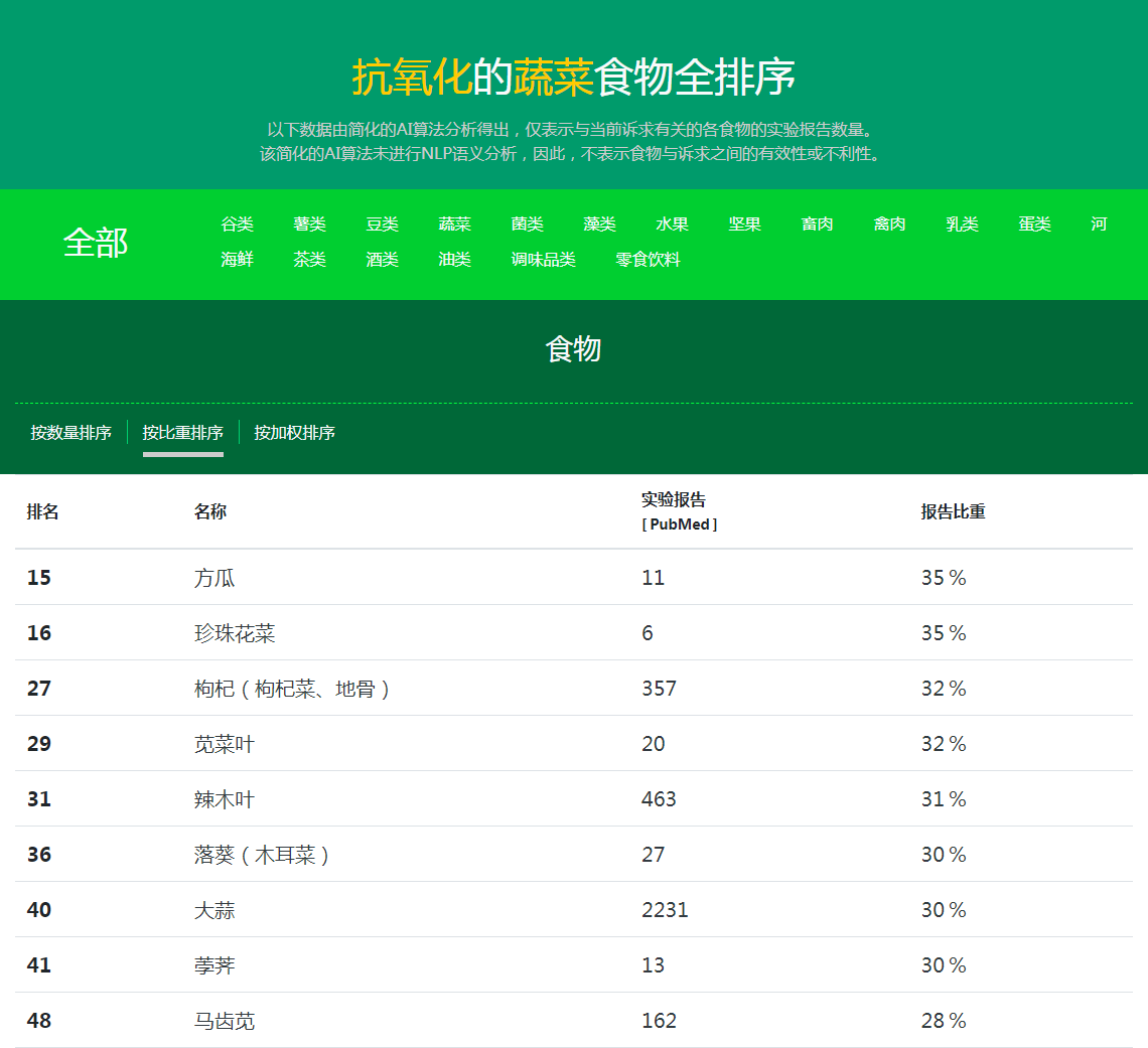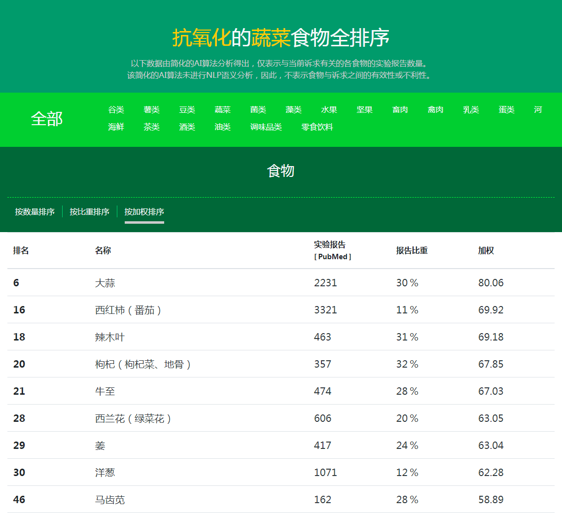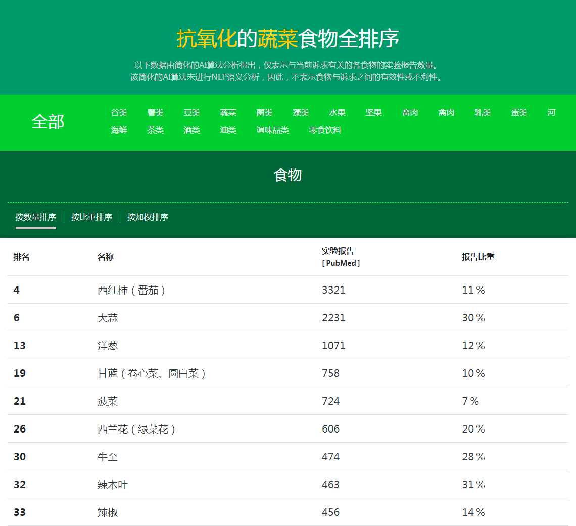 | AI食疗中的PubMed食物全排序 | √ | |||