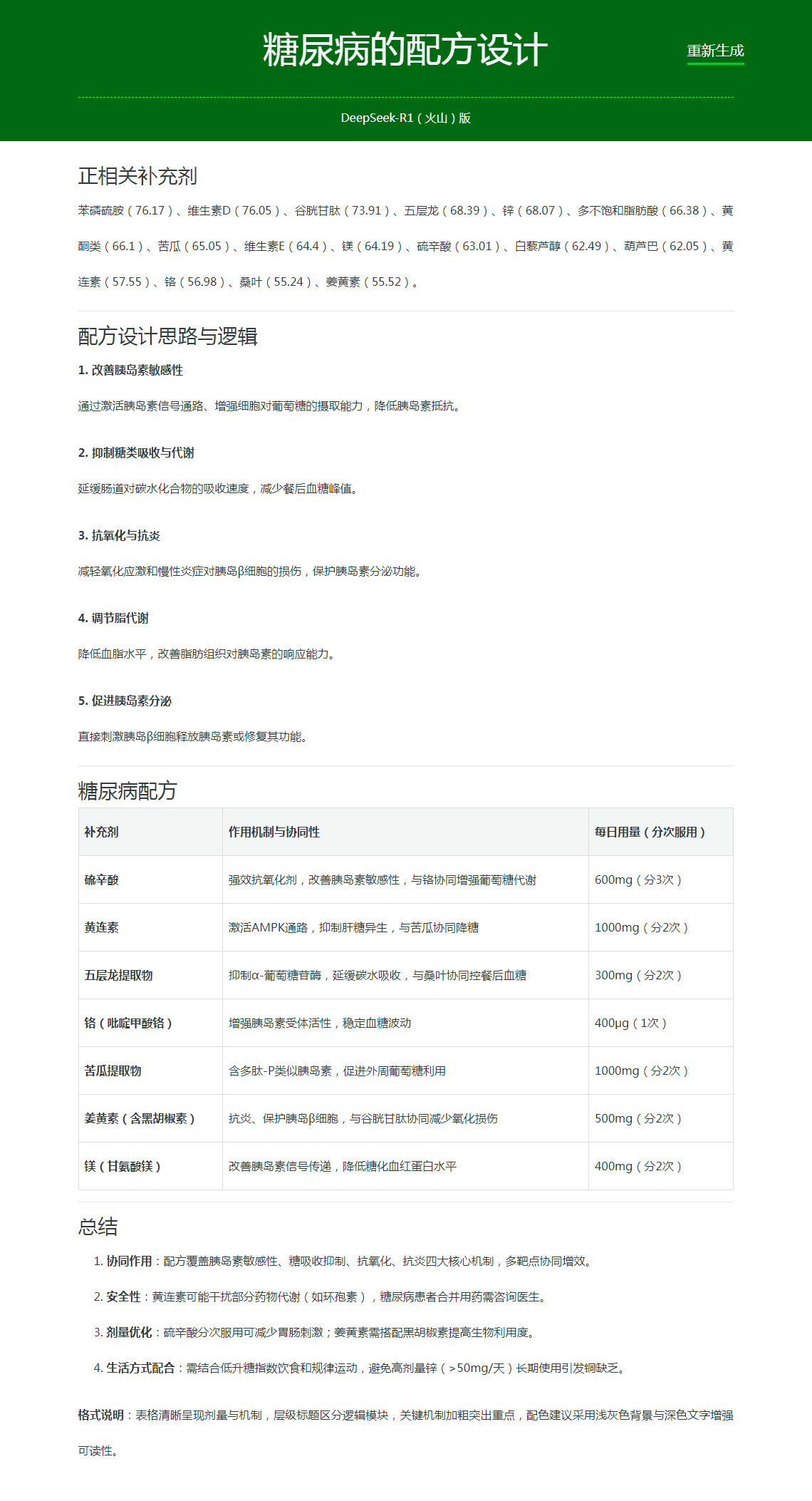 您可以选择一个大语言模型,来结合智膳方舟的大泽矩阵的分析结果。从全球超200万个物种+全球超10万种补充剂中选出最有效的物种和补充剂,结合大语言模型的知识整合与检索能力、逻辑推理与分析能力、数据处理与预测能力、风险规避与伦理边界的把握能力,生成一份基于医学文献的效果显著、安全可靠、全通路多靶点、多途径多机制协同作用的完整配方。