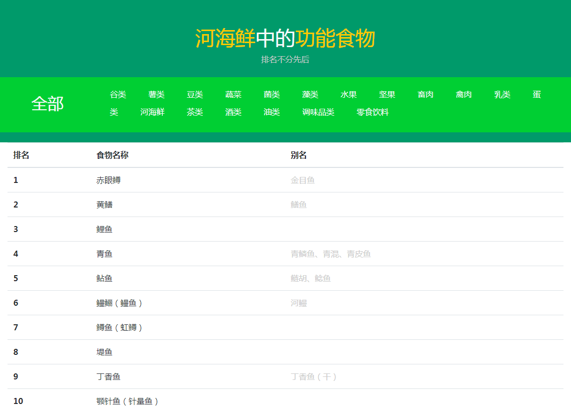 4. 在营养速查榜中可对46种类黄酮细分成分进行双向排序。